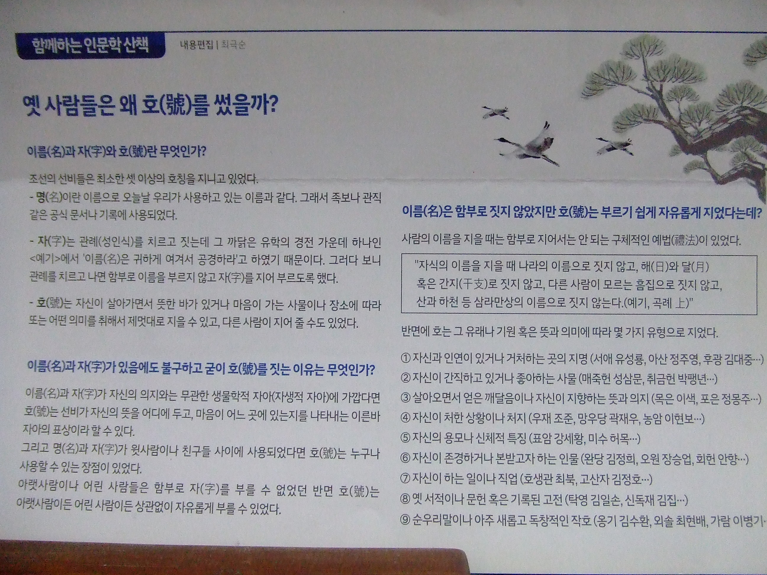 이름(名)은 함부로 짓지 않았지만 호(號)는 부르기 쉽게 자유롭게 지었다는데?